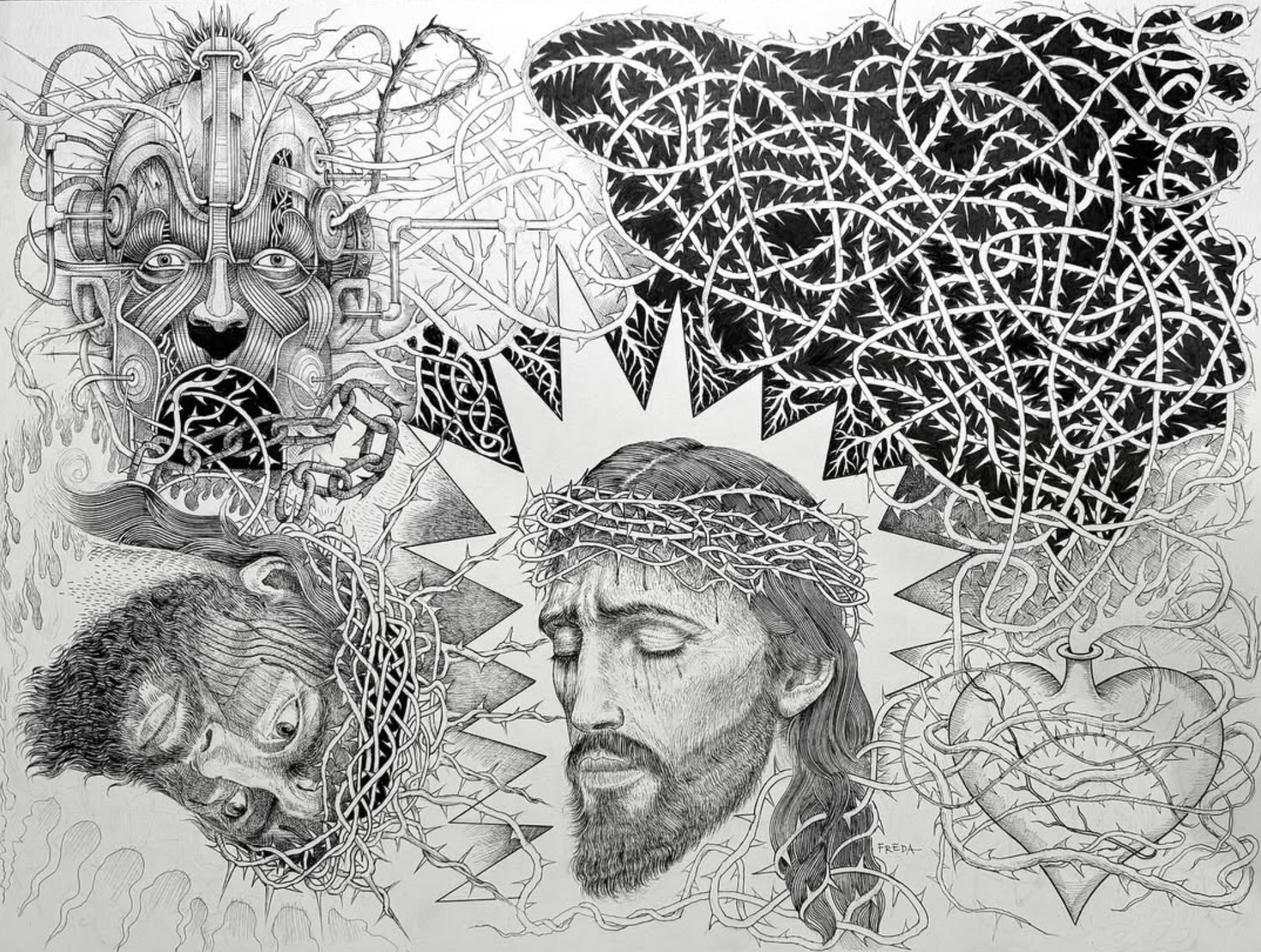 An original, pen and ink on paper by acclaimed artist, Anthony Freda.